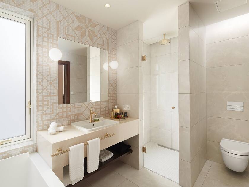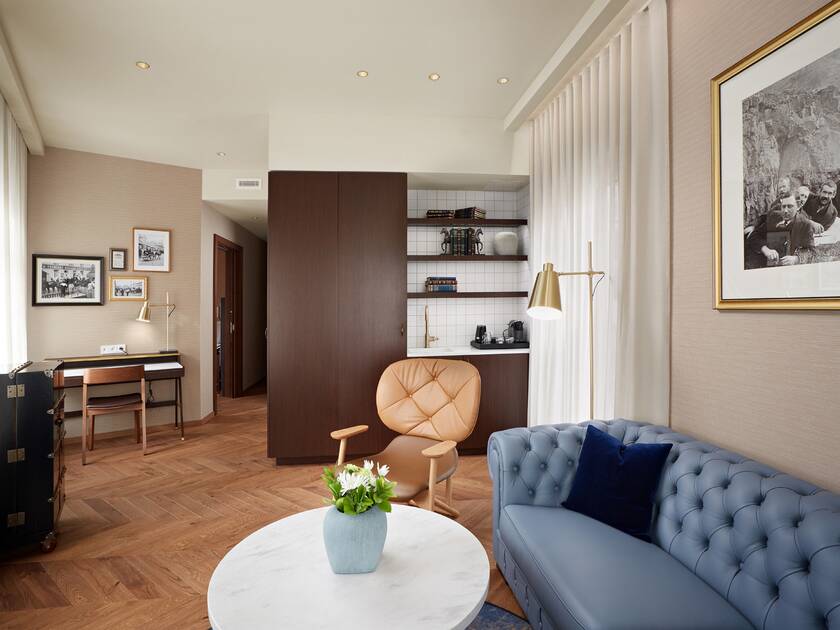 Svými charakteristickými porcelánovými vložkami a zasunutými trubkami přispívá kolekce k celkové estetice hotelu, která oslavuje minulost v nové interpretaci.