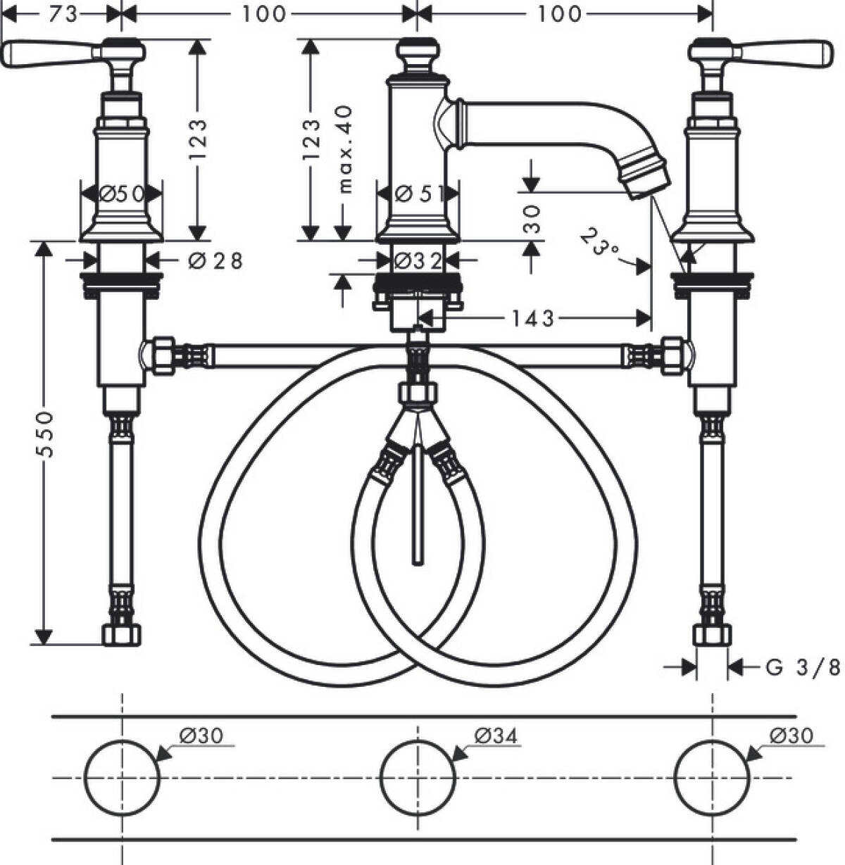AXOR Montreux 3-hole basin mixer 30 with lever handles and pop-up waste set