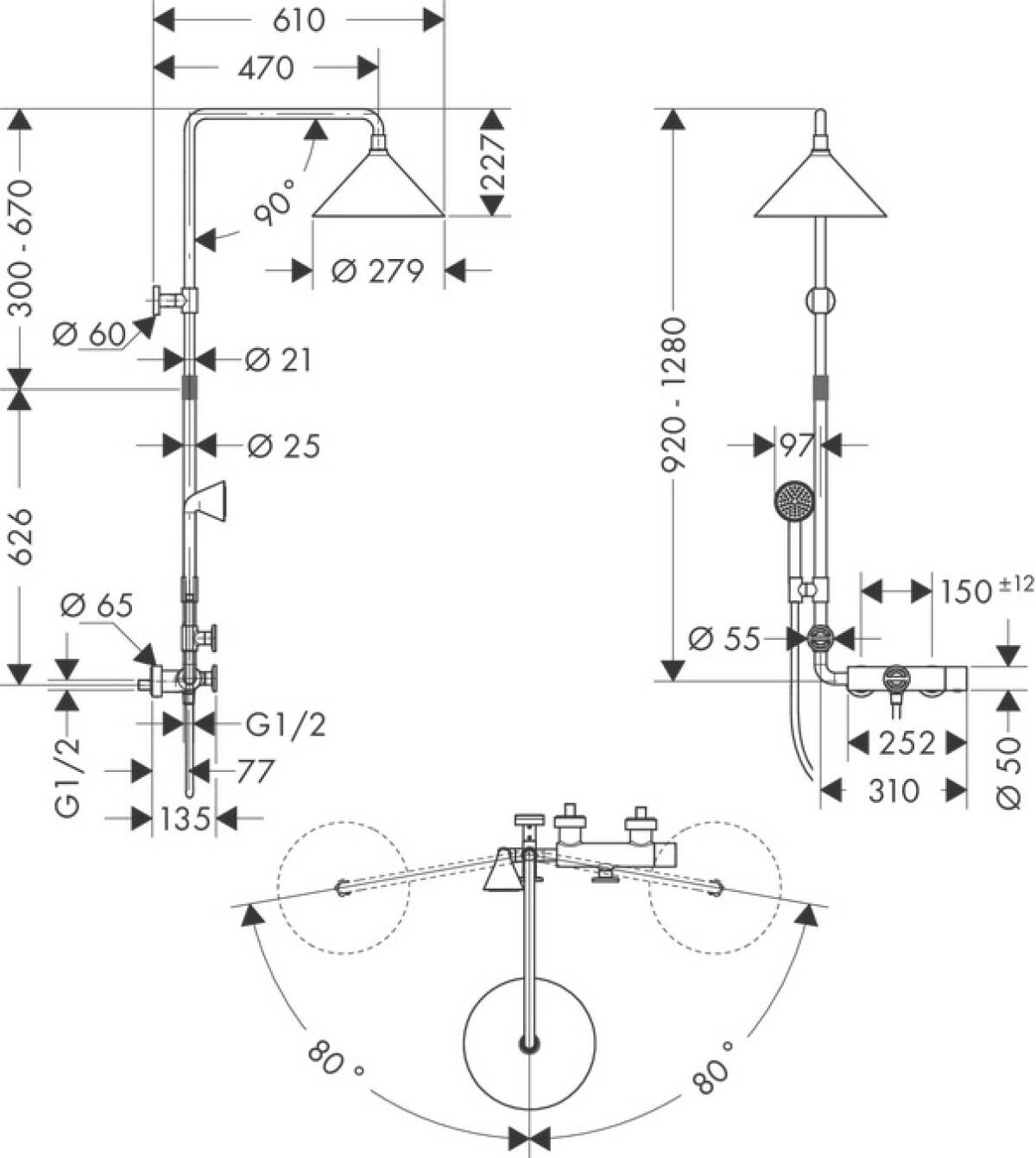 | consists of | overhead shower, hand shower, shower thermostat, shower hose, slider |