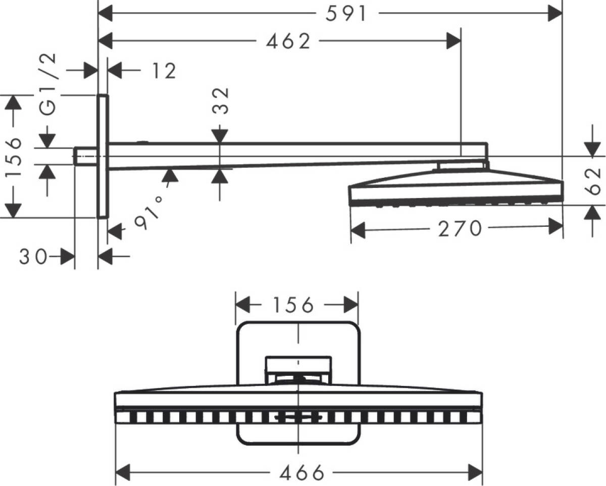 Overhead shower 460/300 1jet with shower arm and softcube escutcheon