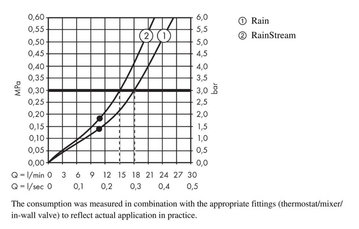 | flow rate Rain spray (at 3 bar) | 18 l/min |