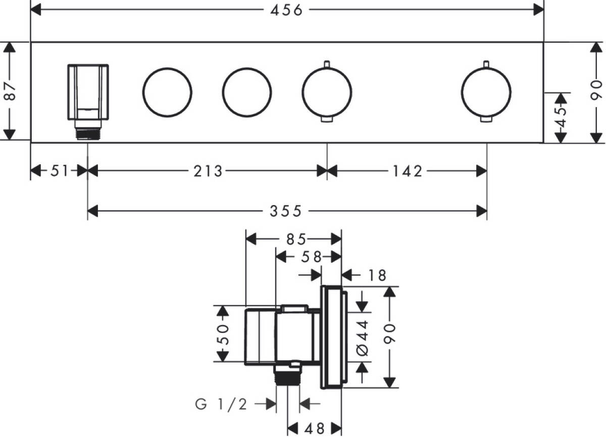 Thermostatic module Select 460/90 for concealed installation for 2 functions
