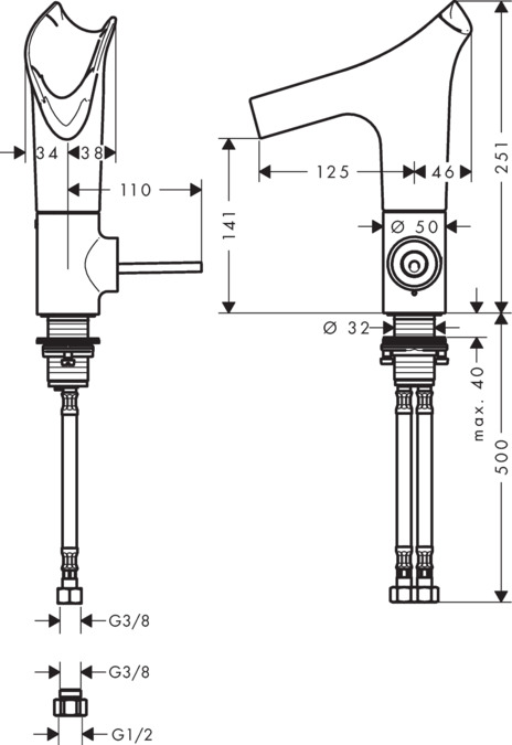 | additional comment | handle position on the side: bottom-side at the base body (not suitable for wash bowls) |