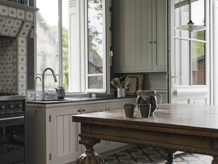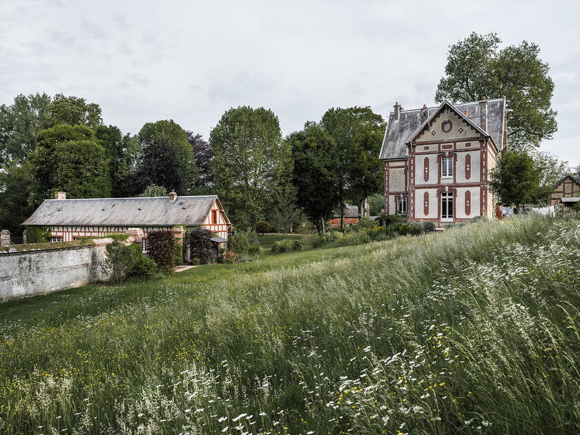 I motivi per fare una vacanza in Normandia sono molti, tanti quante sono le bellezze della regione. Uno di questi motivi è rilassarsi sulla costa collinare, oppure dedicarsi ad attività come l'escursionismo lungo scogliere che aggettano drammaticamente sul mare. Ma tutti coloro che visitano questa parte del Nord della Francia trovano un'atmosfera unica, un paesaggio ampio e incontaminato, frastagliato e splendido, ricco di storia e patria di un particolare stile di vita. Non c'è quindi da stupirsi se il rinomato designer di interni Tristan Auer ha notato questa casa dei primi anni del ventesimo secolo, riconoscendone subito il valore e il potenziale, e le ha infuso nuova vita, trasformandola in un'espressione artistica della storia della regione e dei suoi precedenti proprietari.
